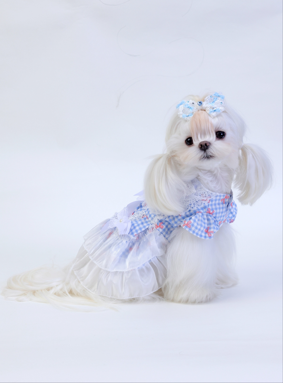 Sugar Belle is a darling pet dress bursting with cottagecore sweetness. Soft gingham blue meets...