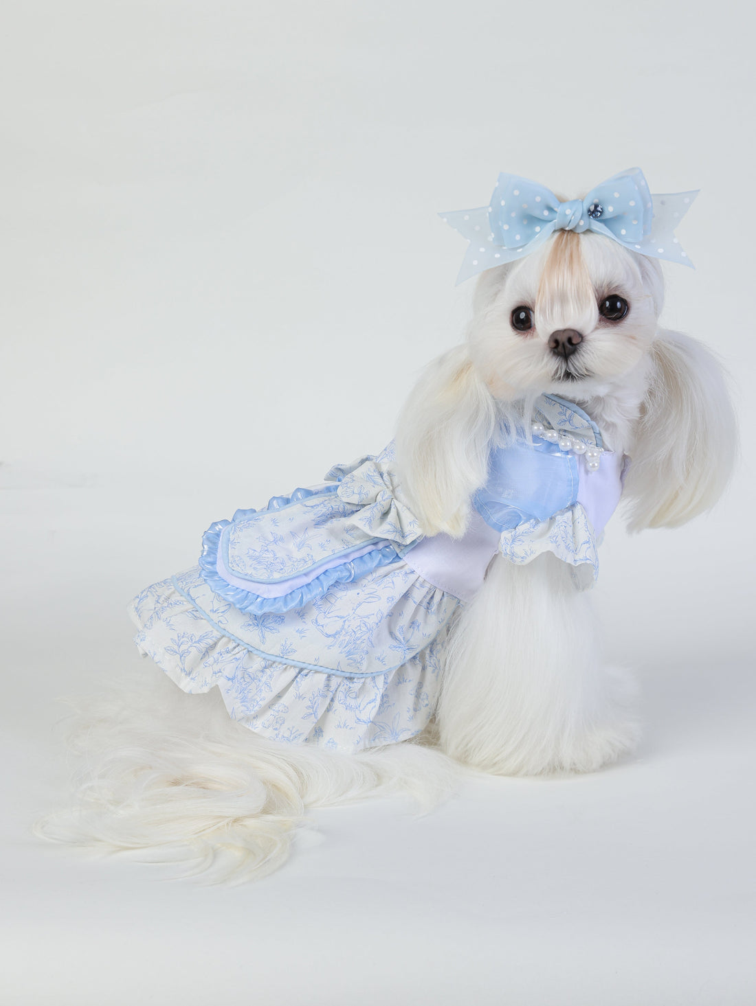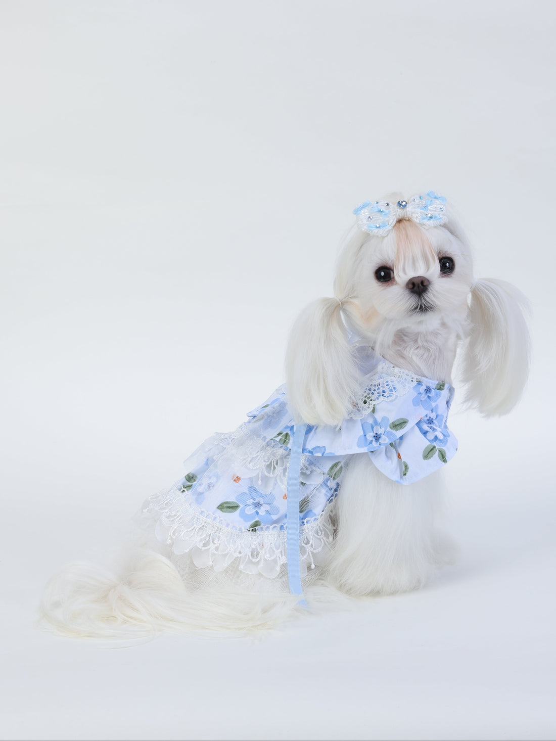 Bluebell Rêverie is a dreamy, vintage-inspired pet dress adorned with soft florals, delicate lace, and...