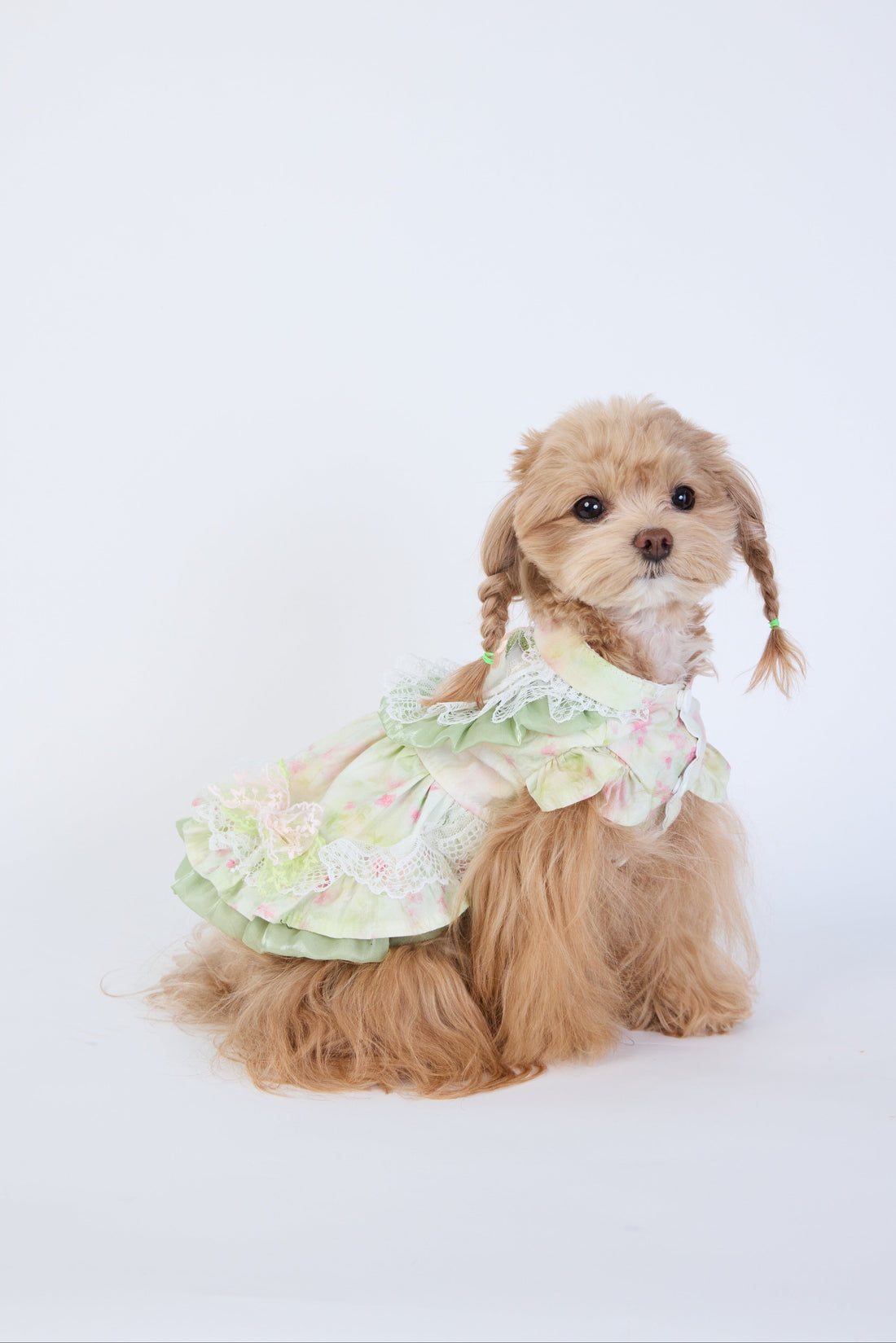 Jade Whisper is a soft, ethereal pet dress in a dreamy green hue, adorned with...