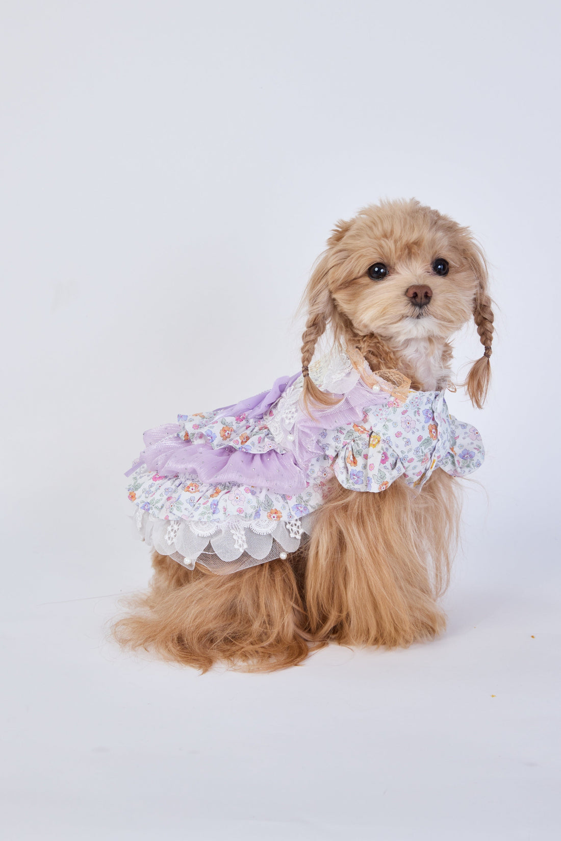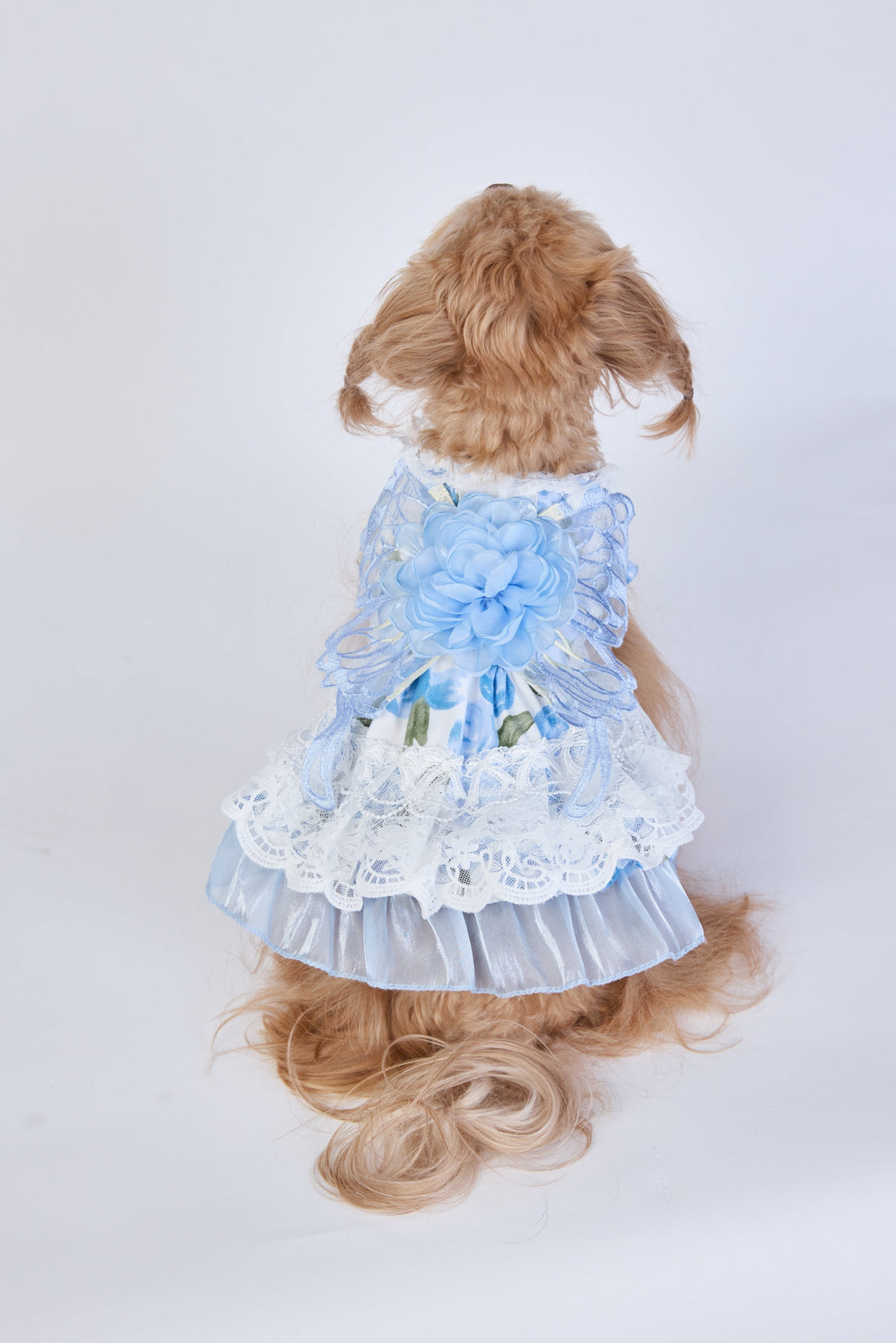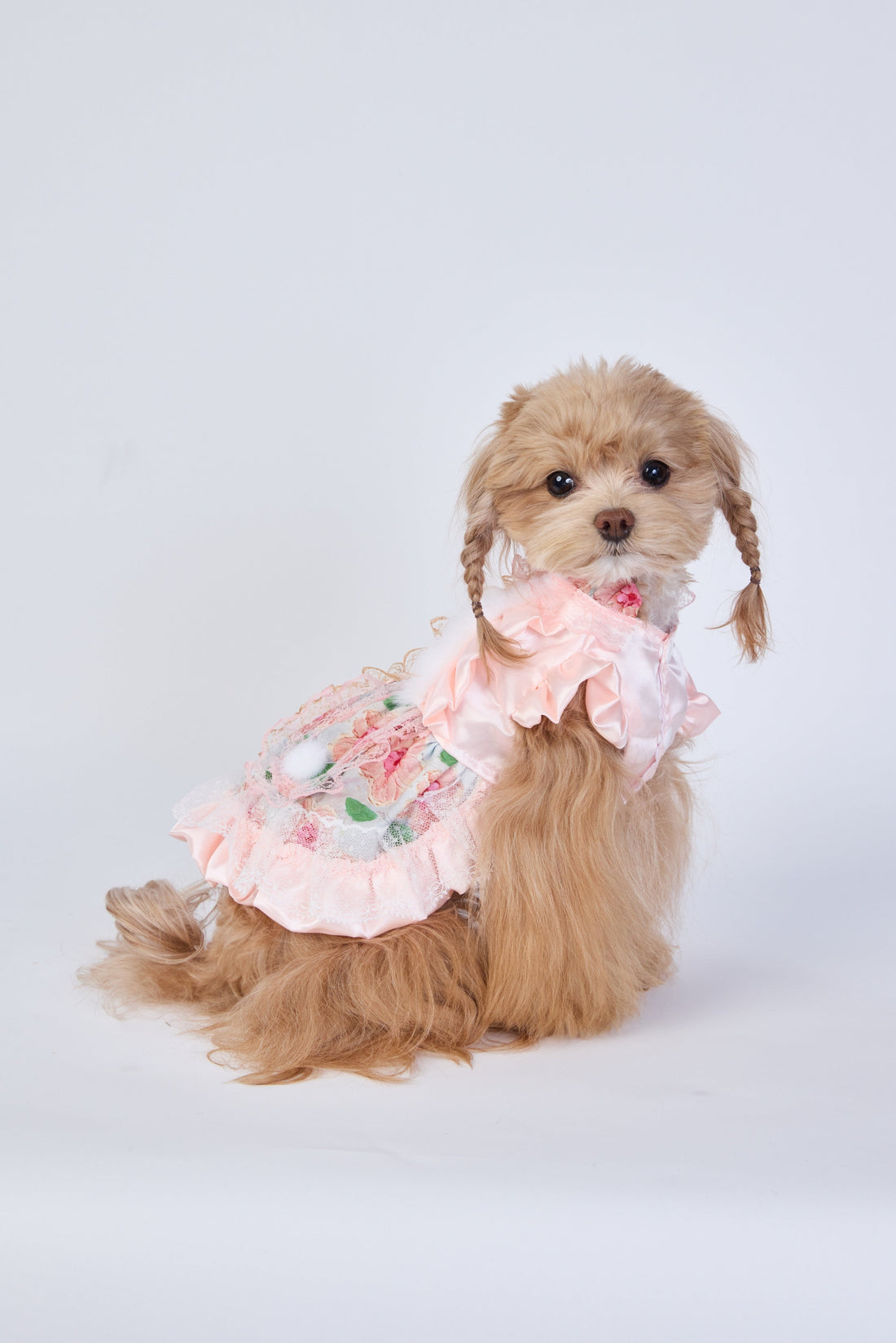 Wrap your pup in sweet elegance with soft blush layers, delicate lace, and embroidered butterfly...