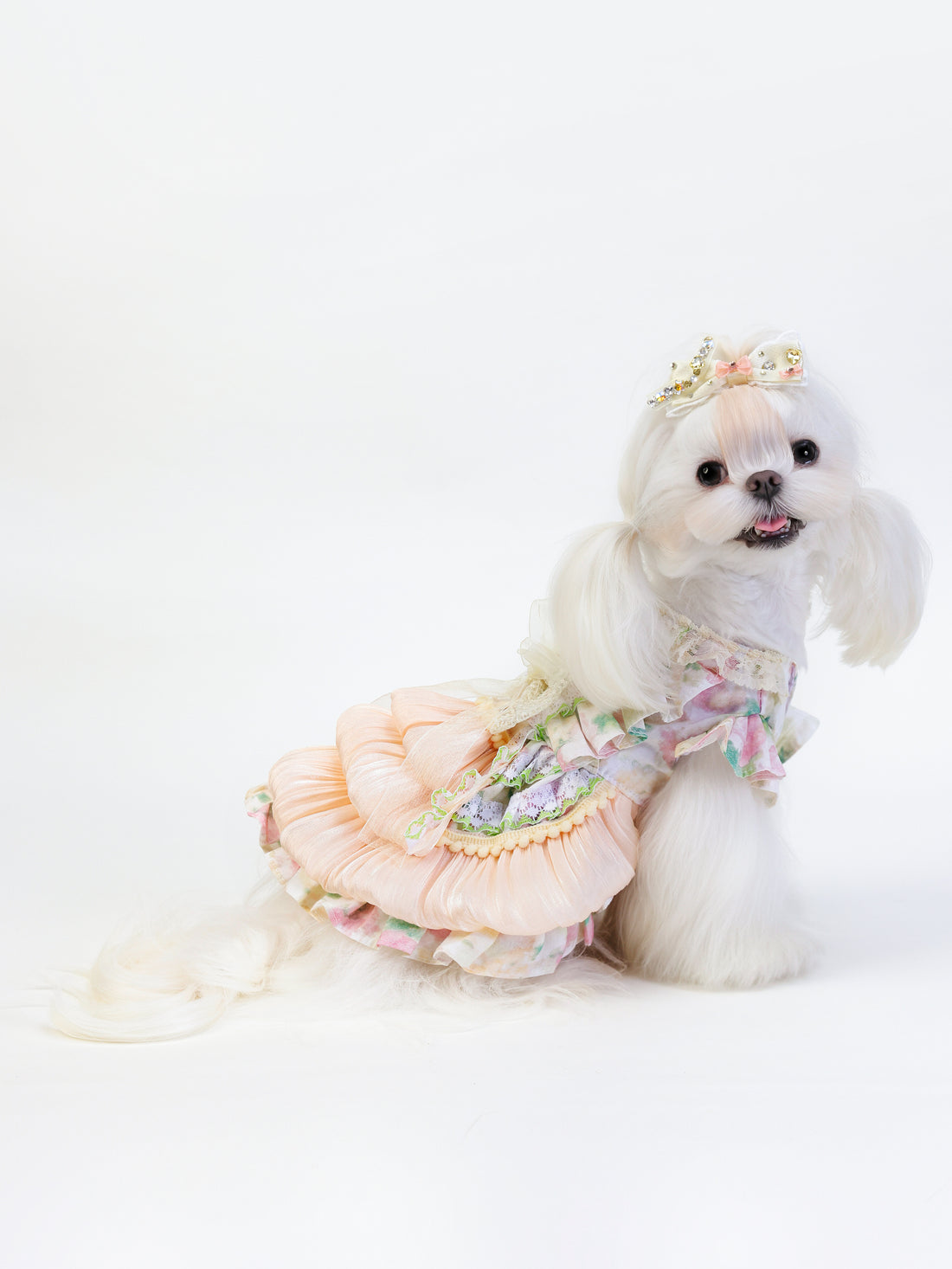 This pet dress feels like a soft whisper. Blush layers, delicate ruffles, and a gentle flow...