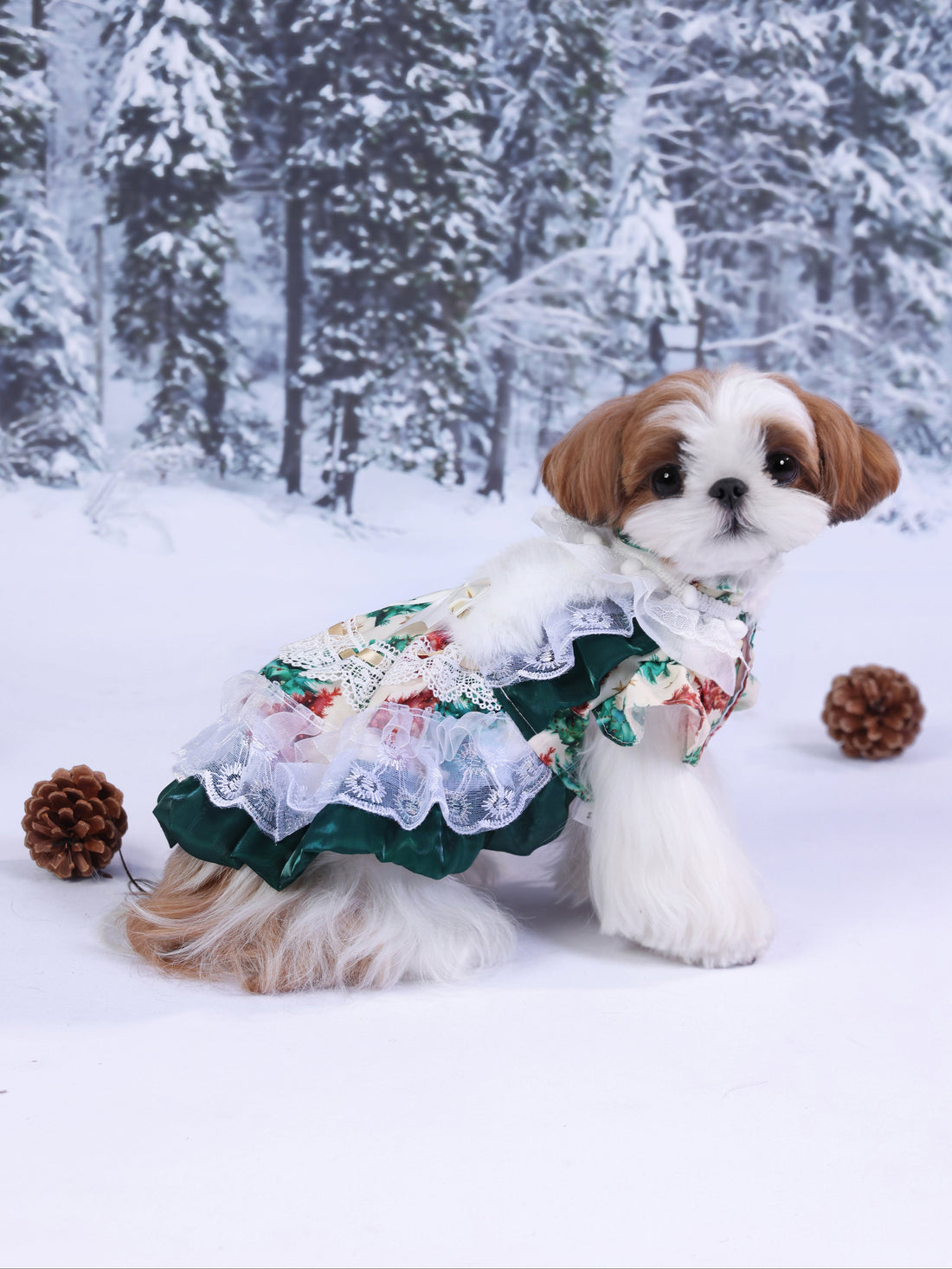 Frosted Charm brings cozy elegance with a touch of vintage flair. This pet dress features...