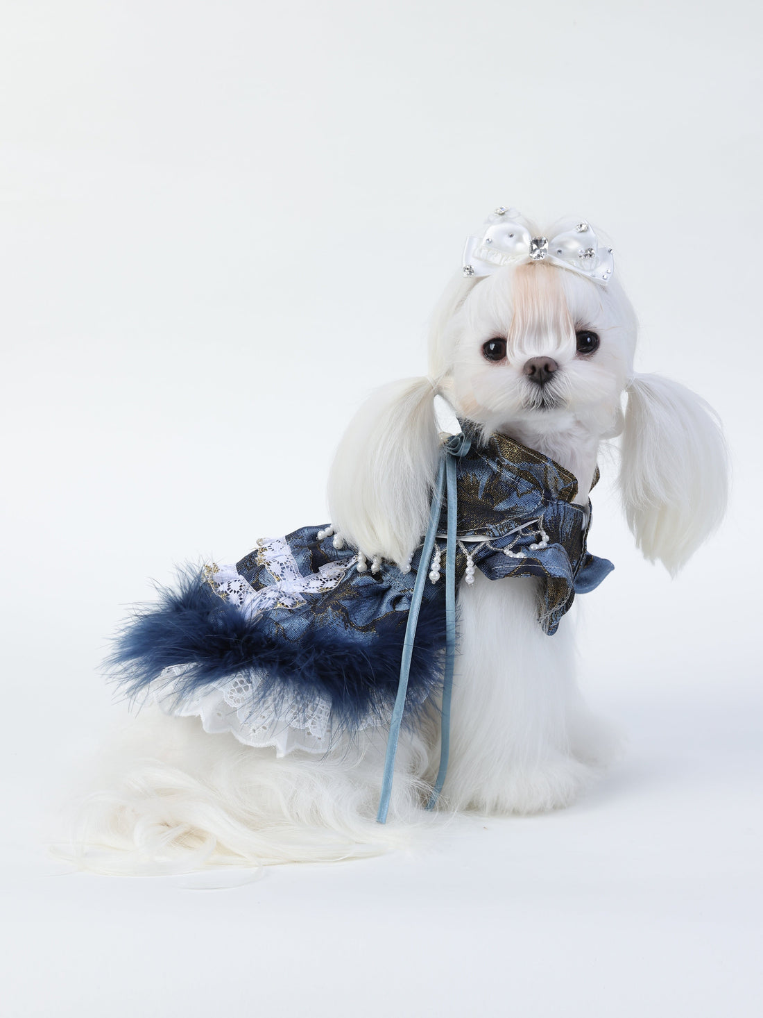 Winter Waltz wraps your pet in classic charm with its deep sapphire brocade and fur-trimmed...
