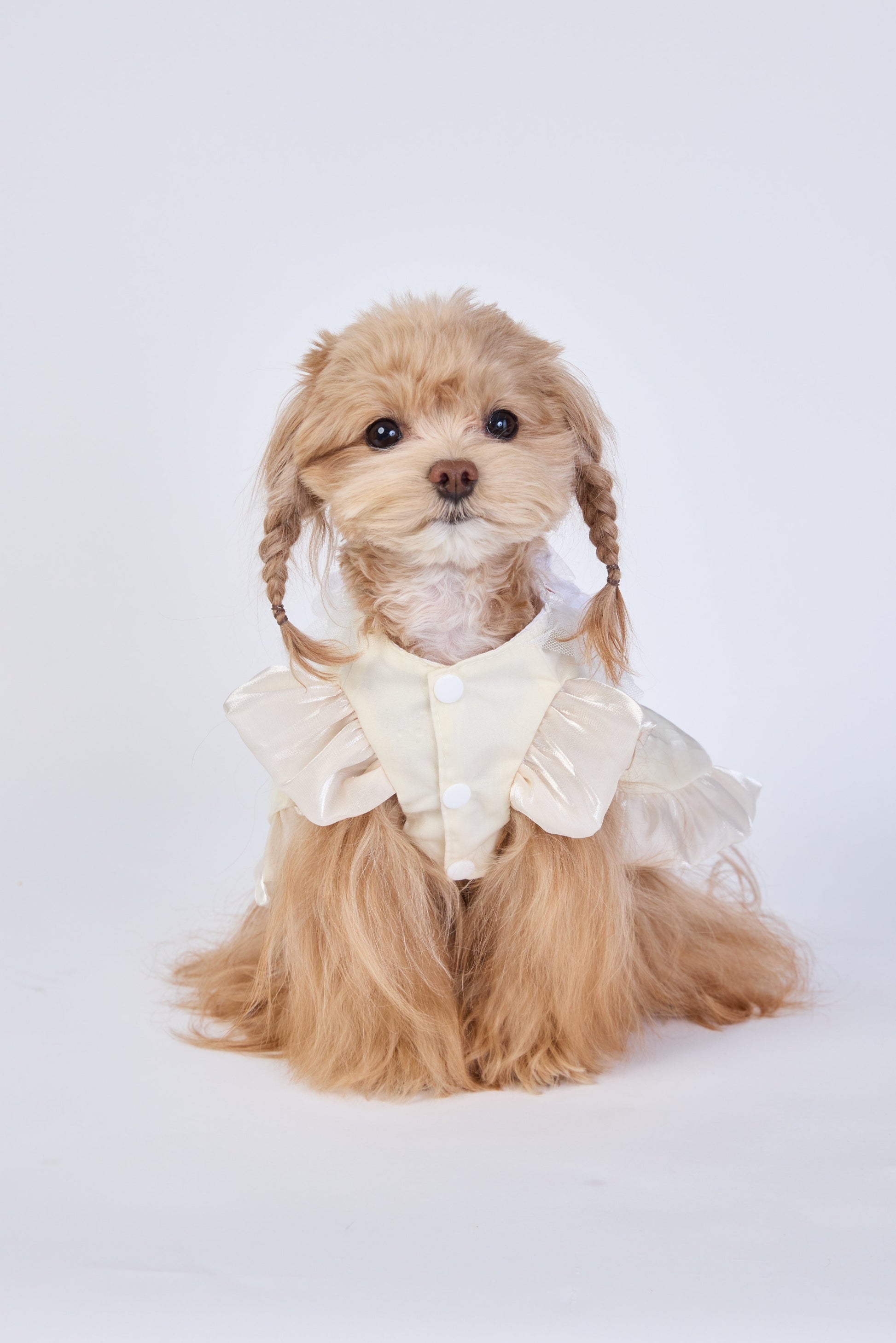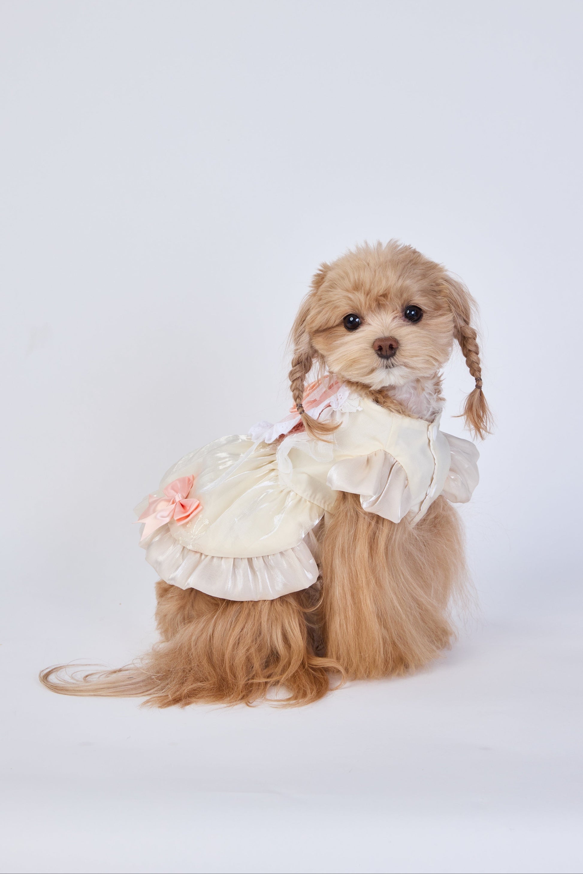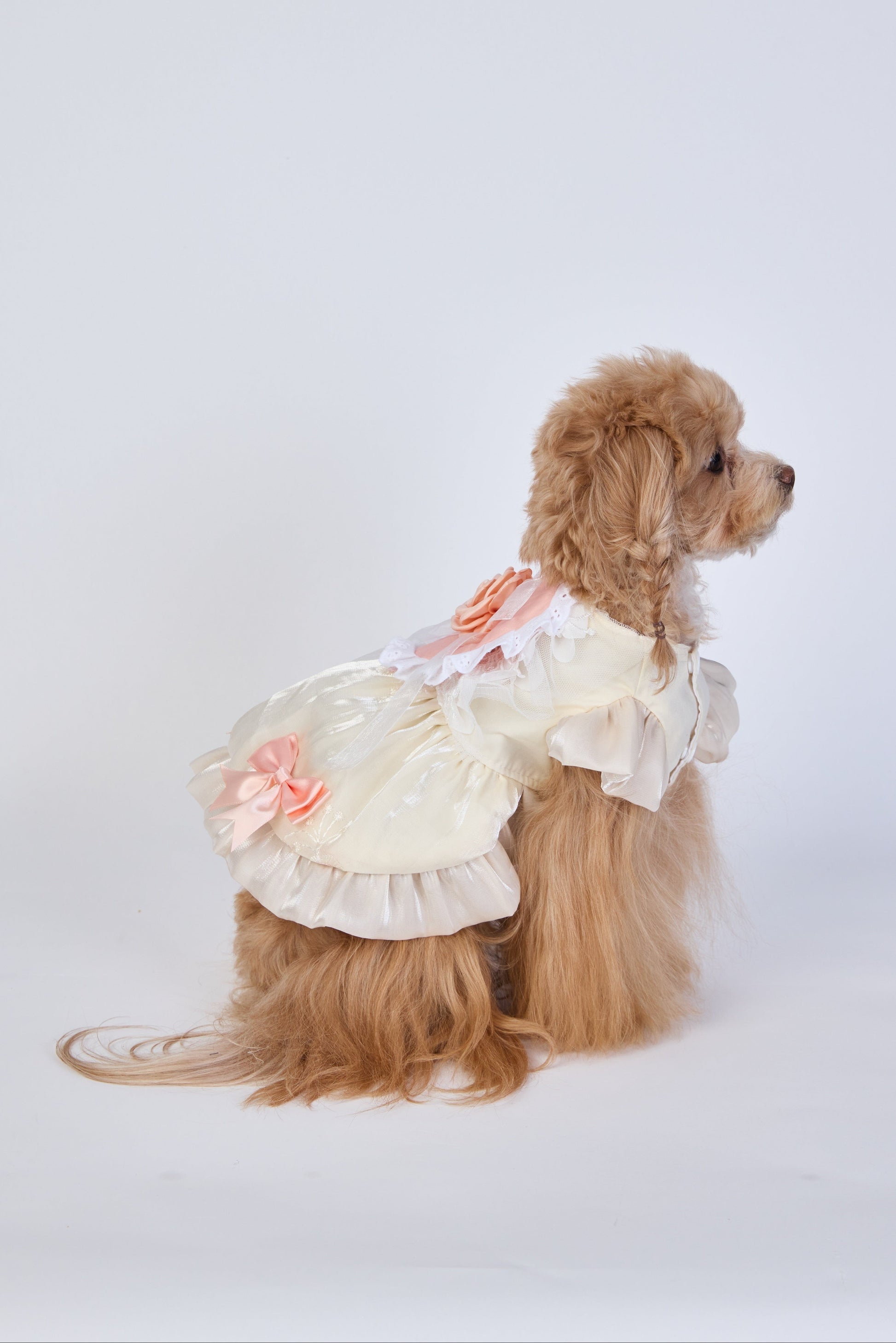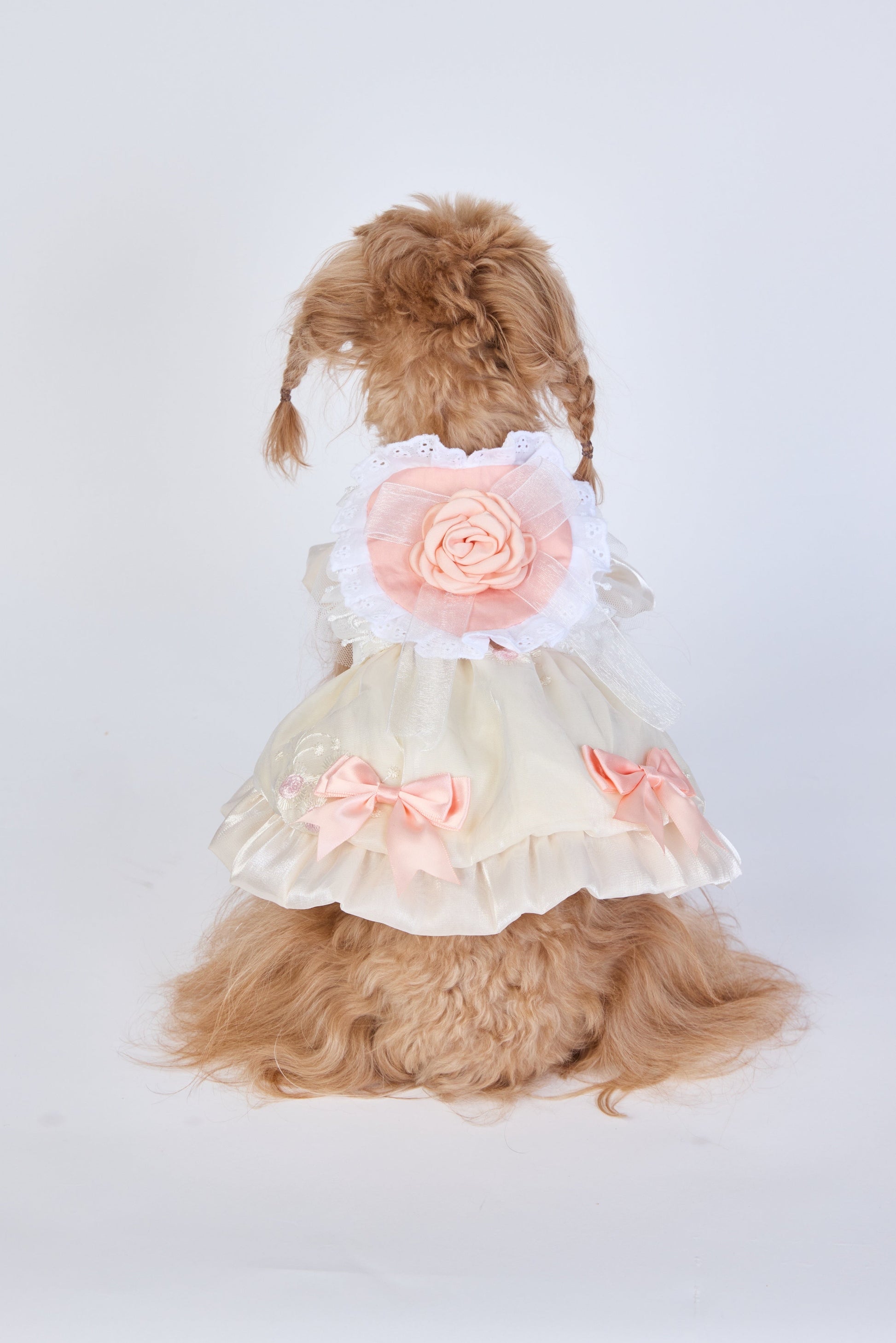 Let your pet shine in the enchanting Dream Rose dress, adorned with a soft layered skirt and a delicate rose centerpiece. The pastel tones and satin finish create a dreamy, romantic look perfect for special moments and photoshoots. Lightweight, comfortable, and elegantly crafted, it brings gentle fairytale charm to every step your pet takes.
