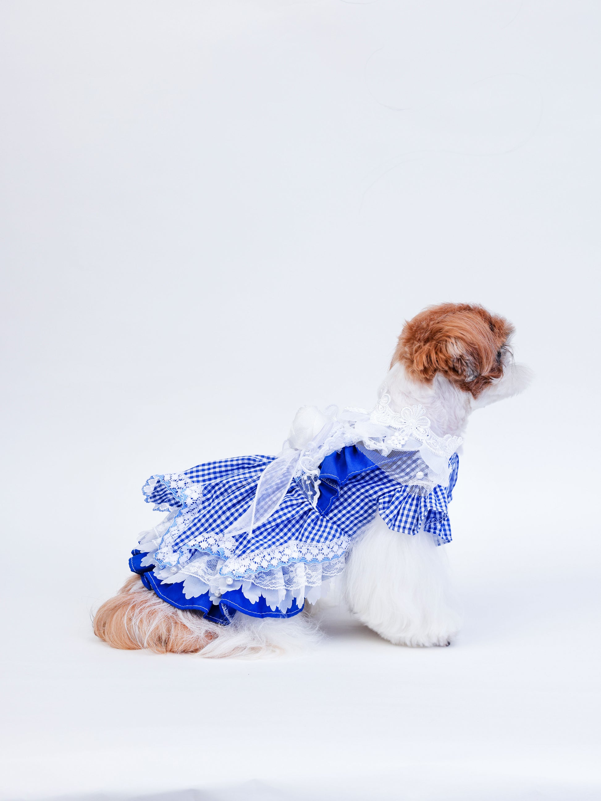Pawpaw Style’s Blue Belle dress combines classic blue-and-white gingham with lace details for a charming, timeless look. Crafted from lightweight, comfortable fabric, it allows your pet to move freely while looking stylish. Ideal for both everyday walks and special occasions, this dress ensures your pet always shines with Pawpaw elegance.