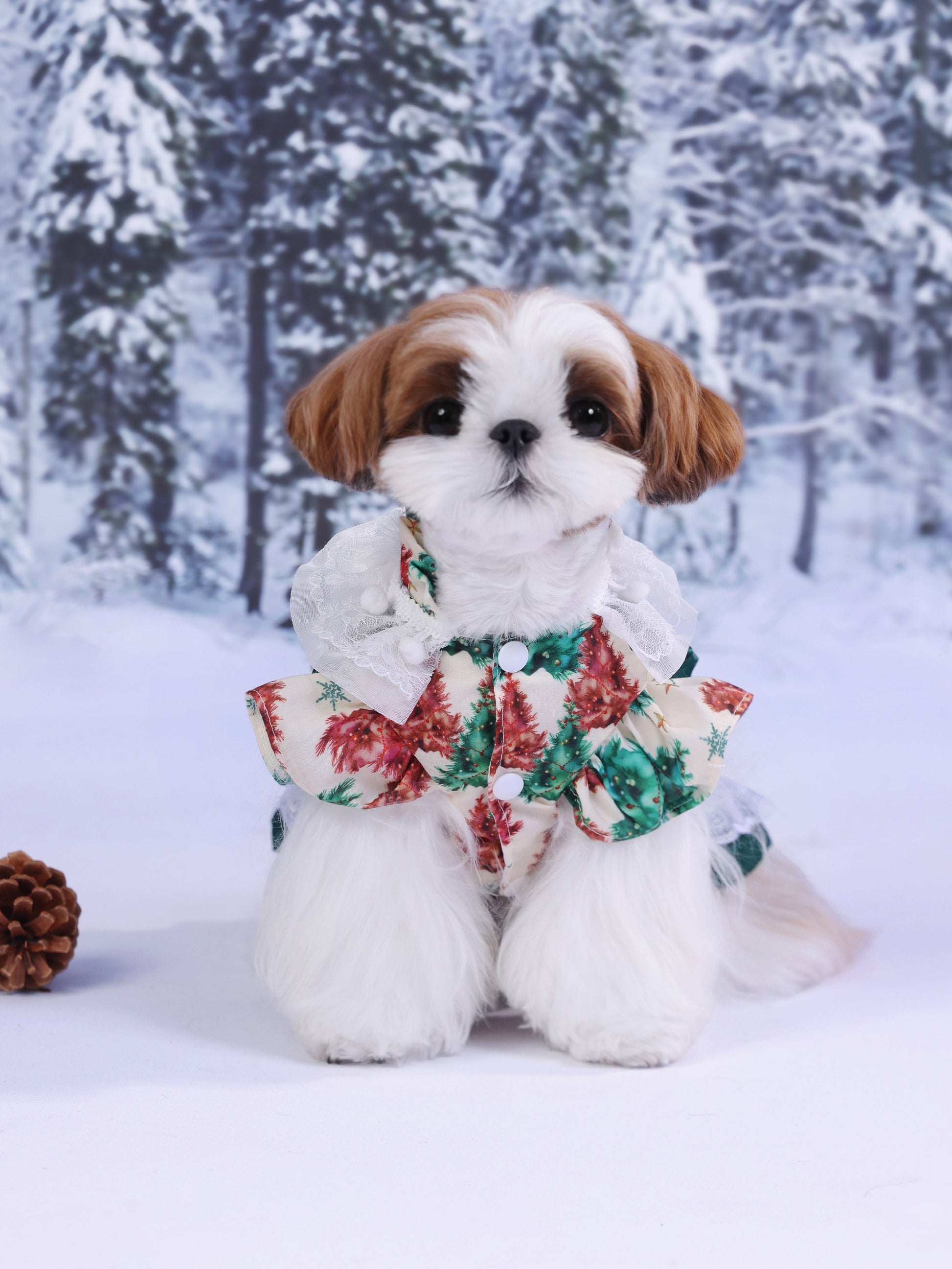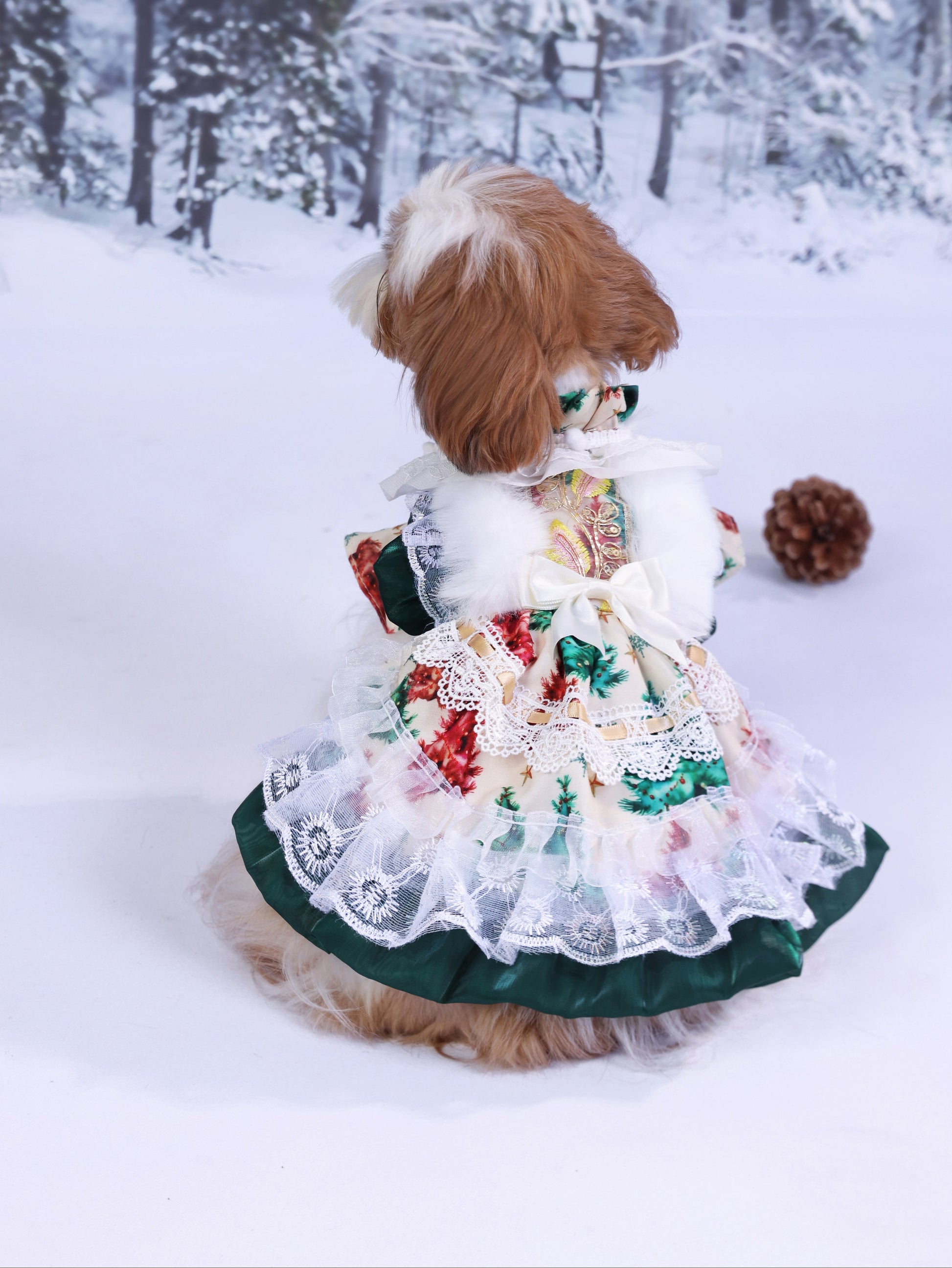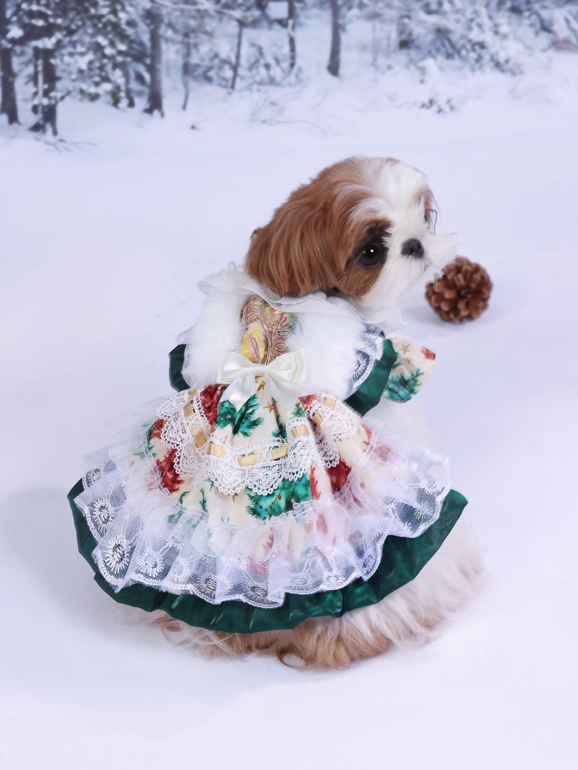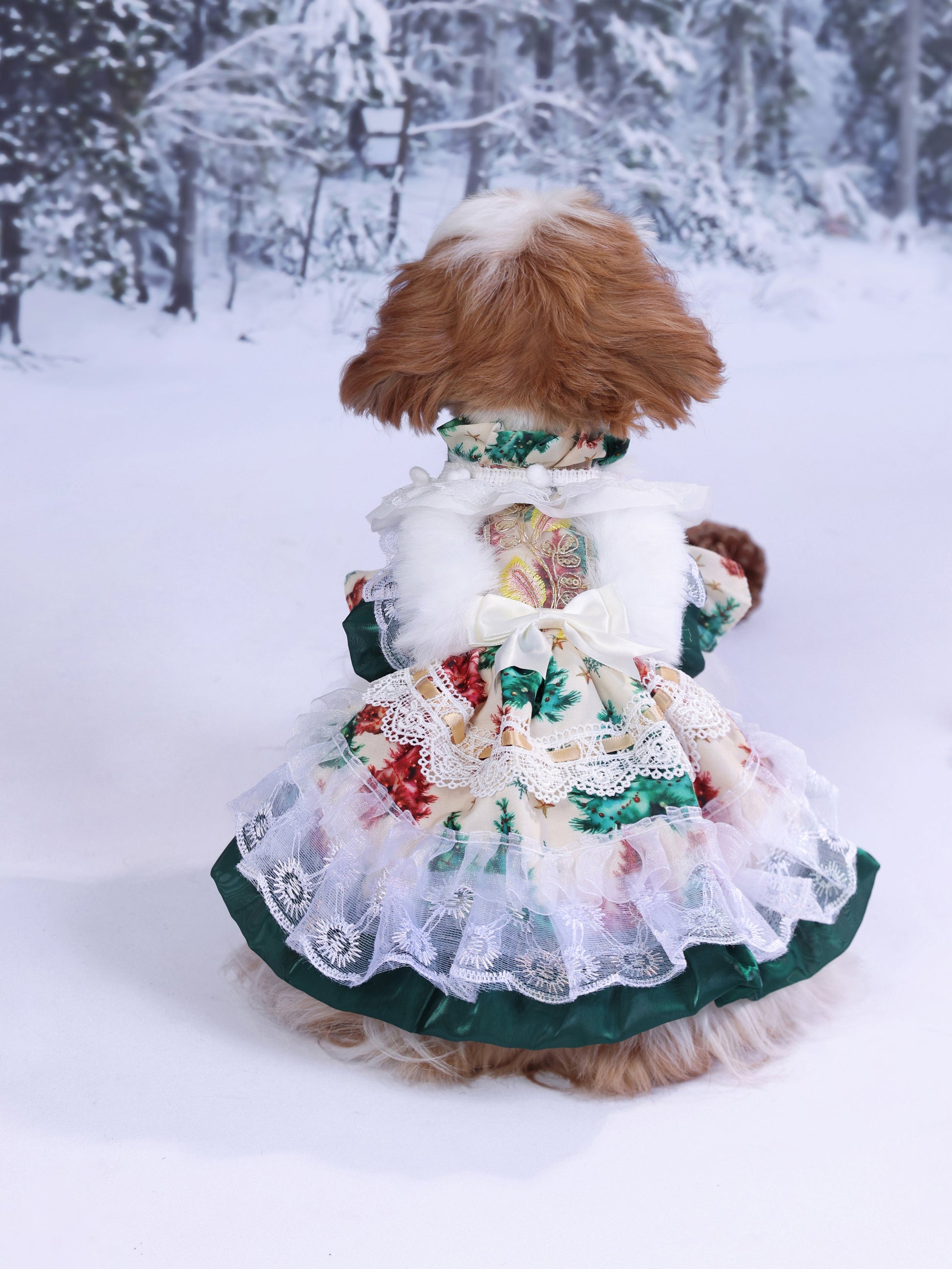 A signature design from Pawpaw Style, where elegance meets warmth. Holly Garden captures the beauty of a winter garden in full blossom — soft florals, layered lace, and gentle fur details handcrafted with love. Let your furry baby shine through the snowy season with timeless charm, comfort, and a touch of Pawpaw magic.