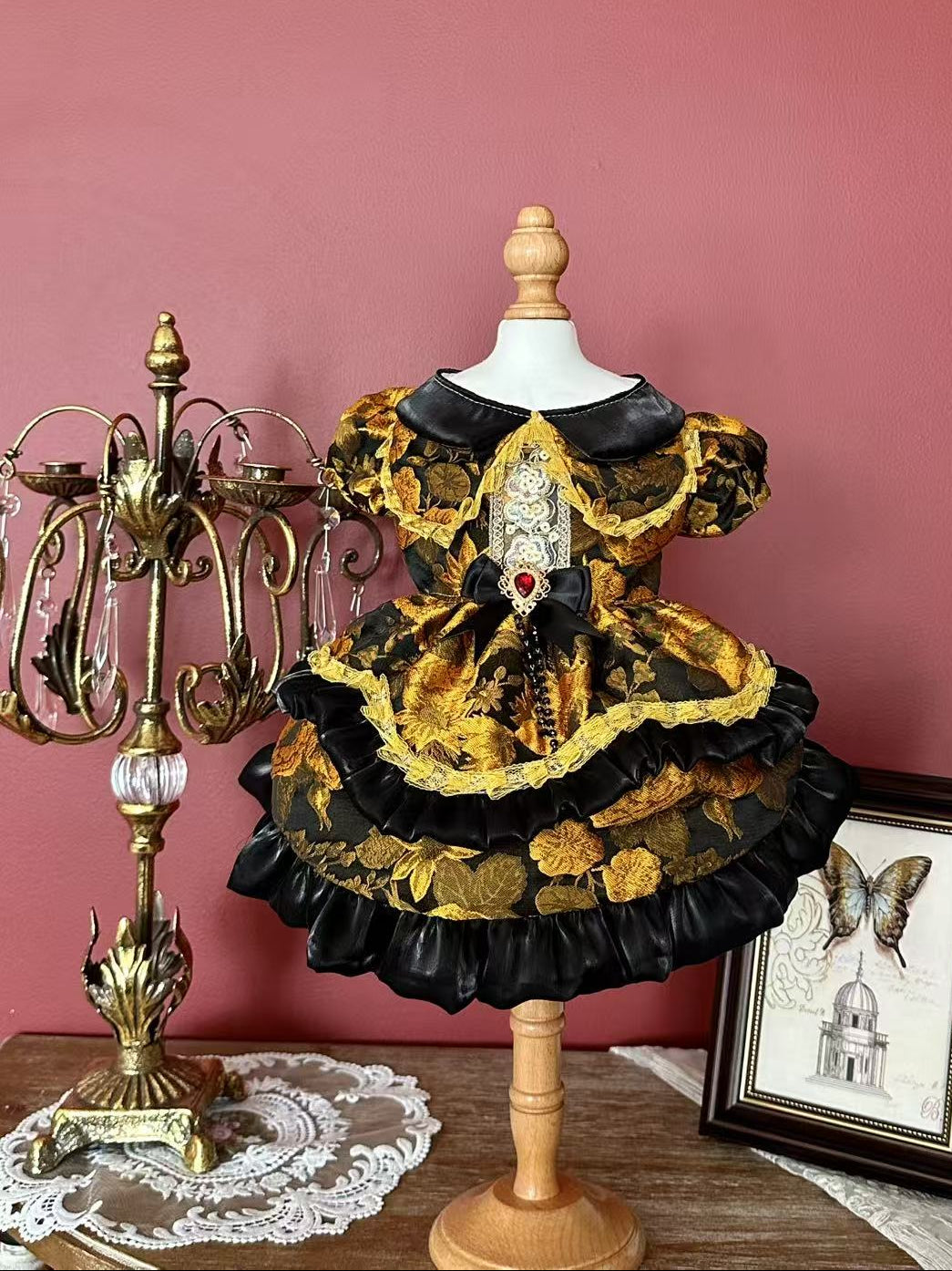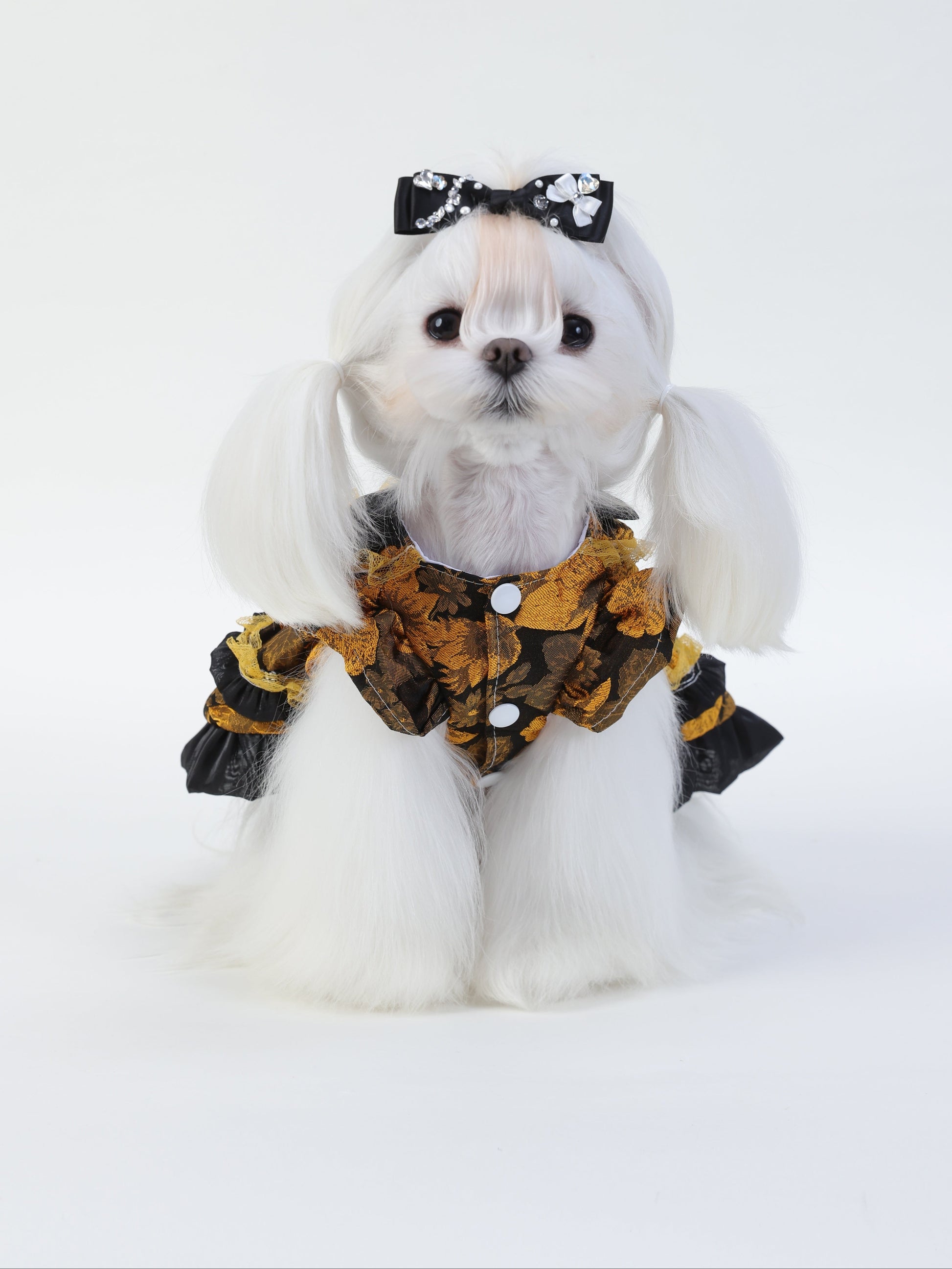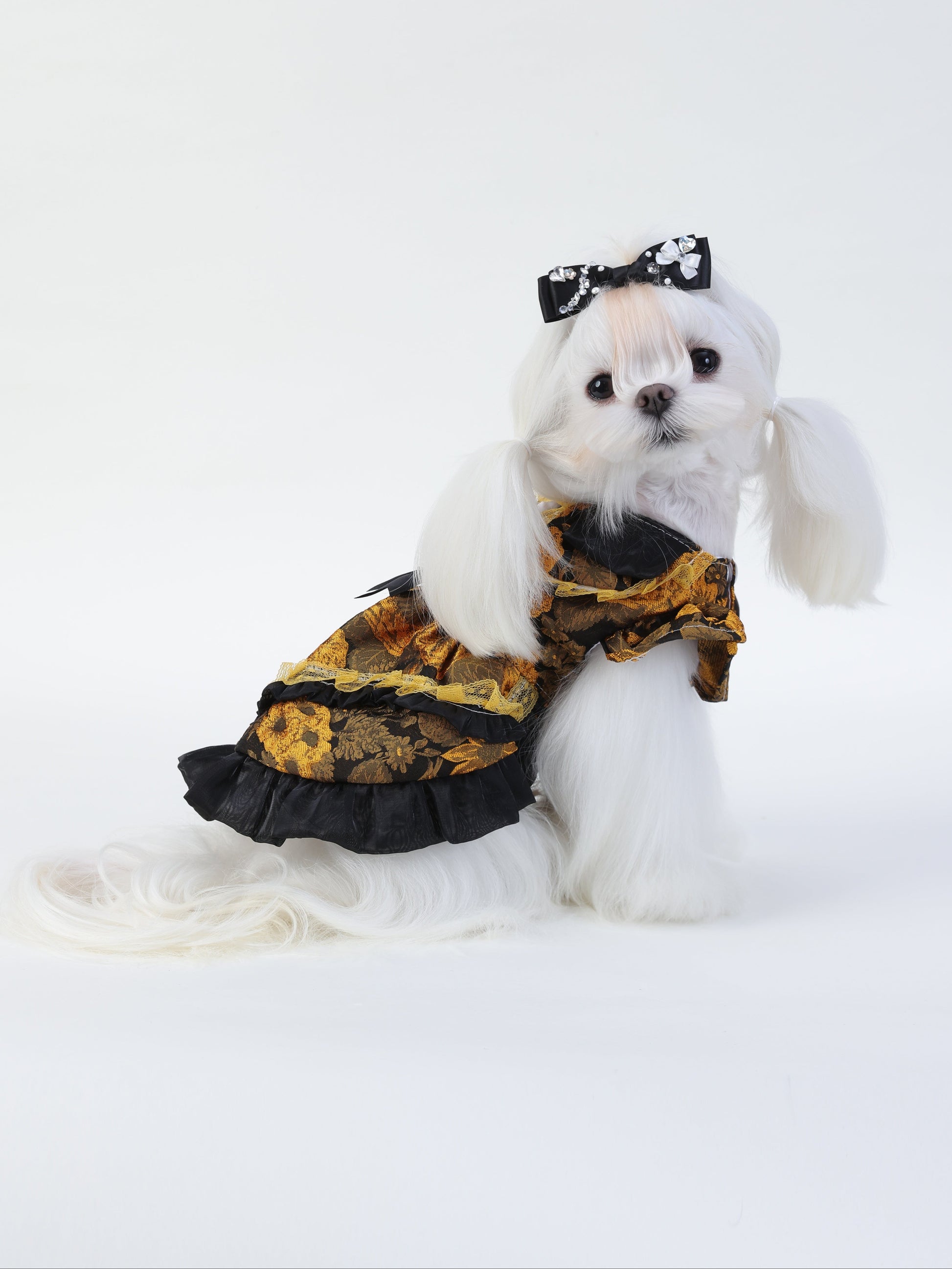 Empress Gold boasts a regal royal yellow base with elegant black sides, creating a vintage yet sophisticated look. The queen-inspired silhouette offers a timeless, noble appeal, perfect for making your pet the center of attention at any formal occasion.