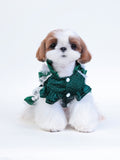 A playful green and white polka dot dress, designed for everyday wear. Soft, breathable fabric ensures comfort, while the cute bow adds a touch of charm. Perfect for any occasion.