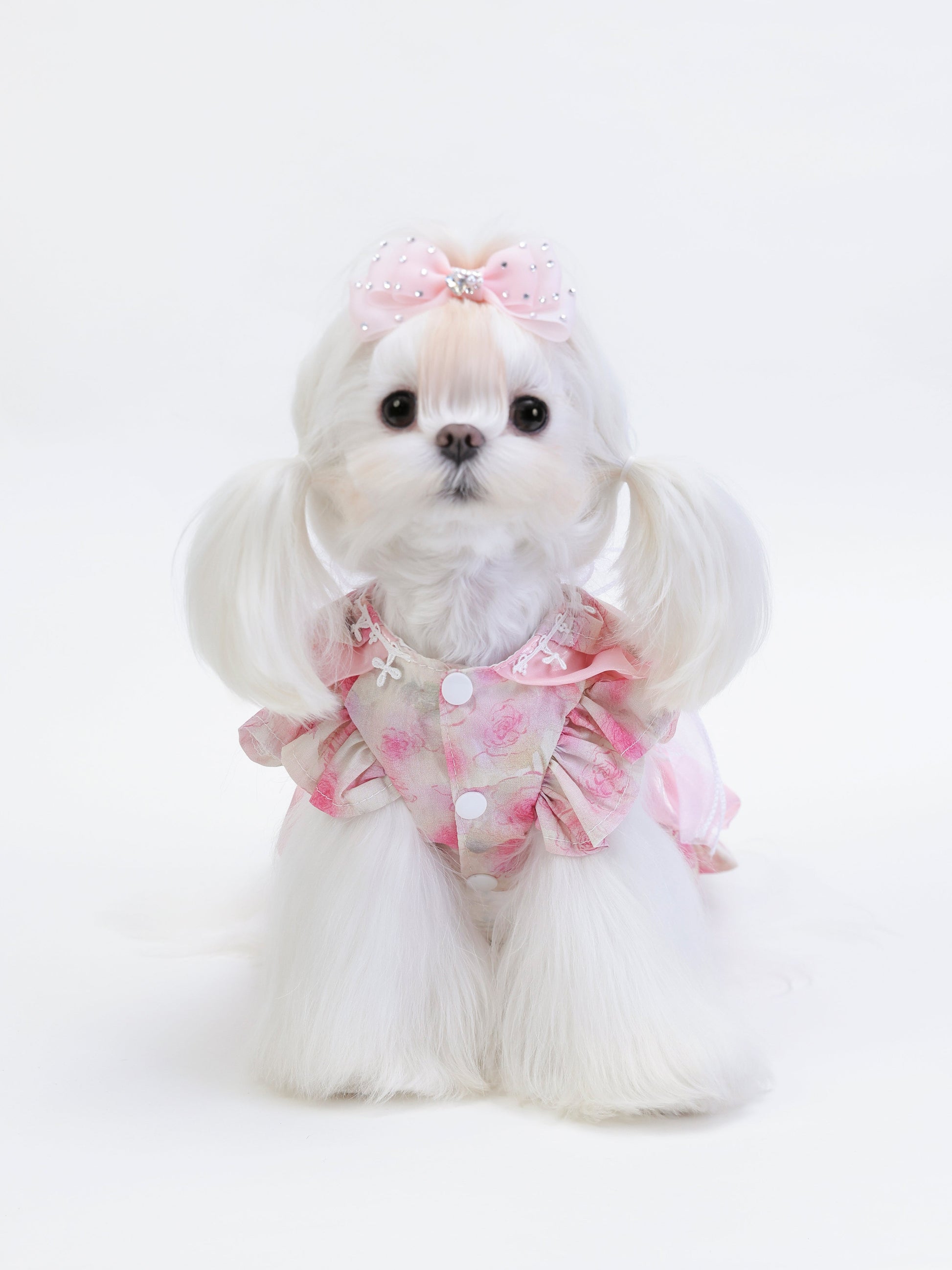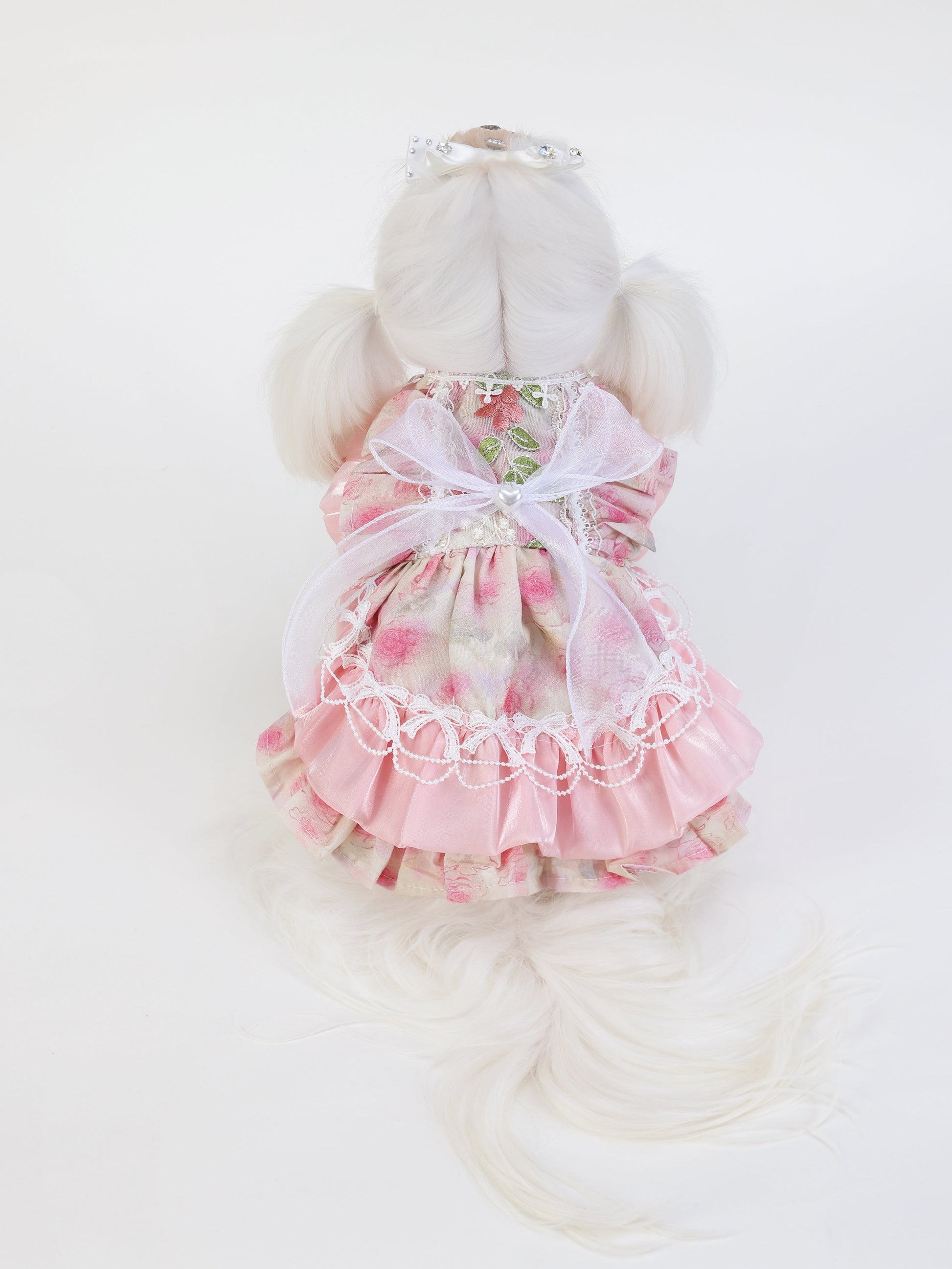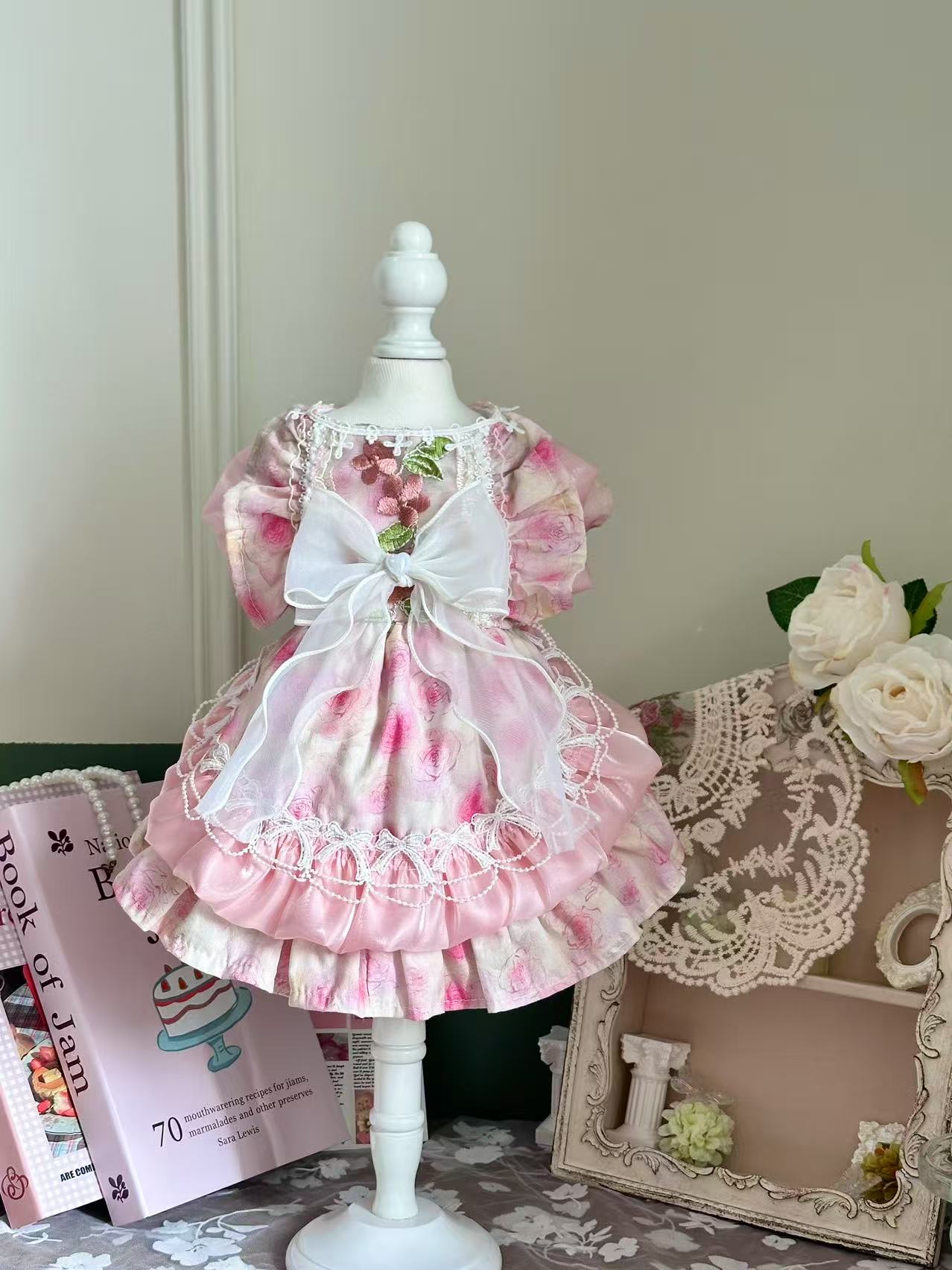 Petal CharmWith a watercolor-inspired floral pattern, this dress brings soft pinks and whites to life. The oversized white bow at the back adds a playful elegance. Its clean lines and gentle print make it ideal for spring occasions.