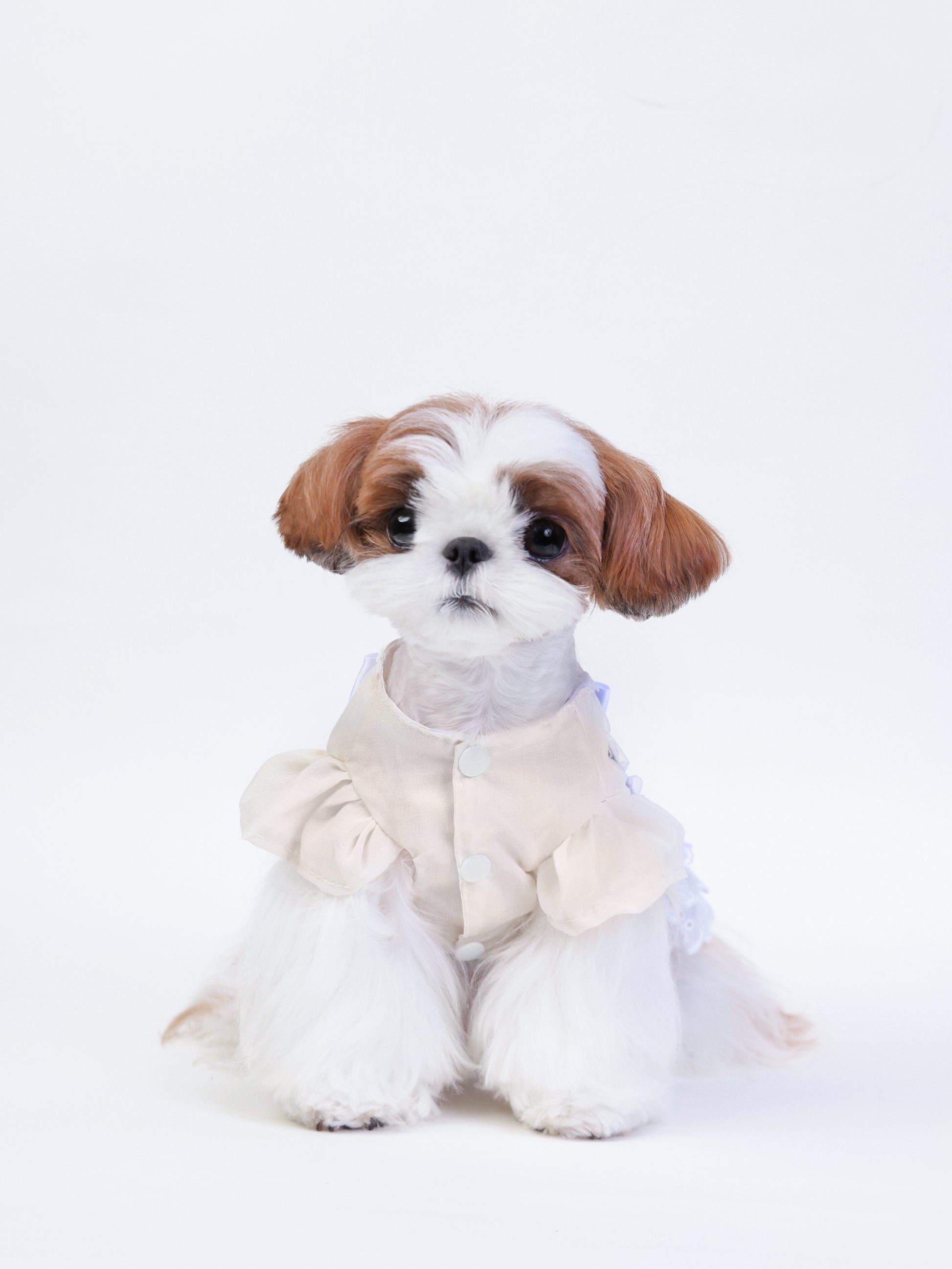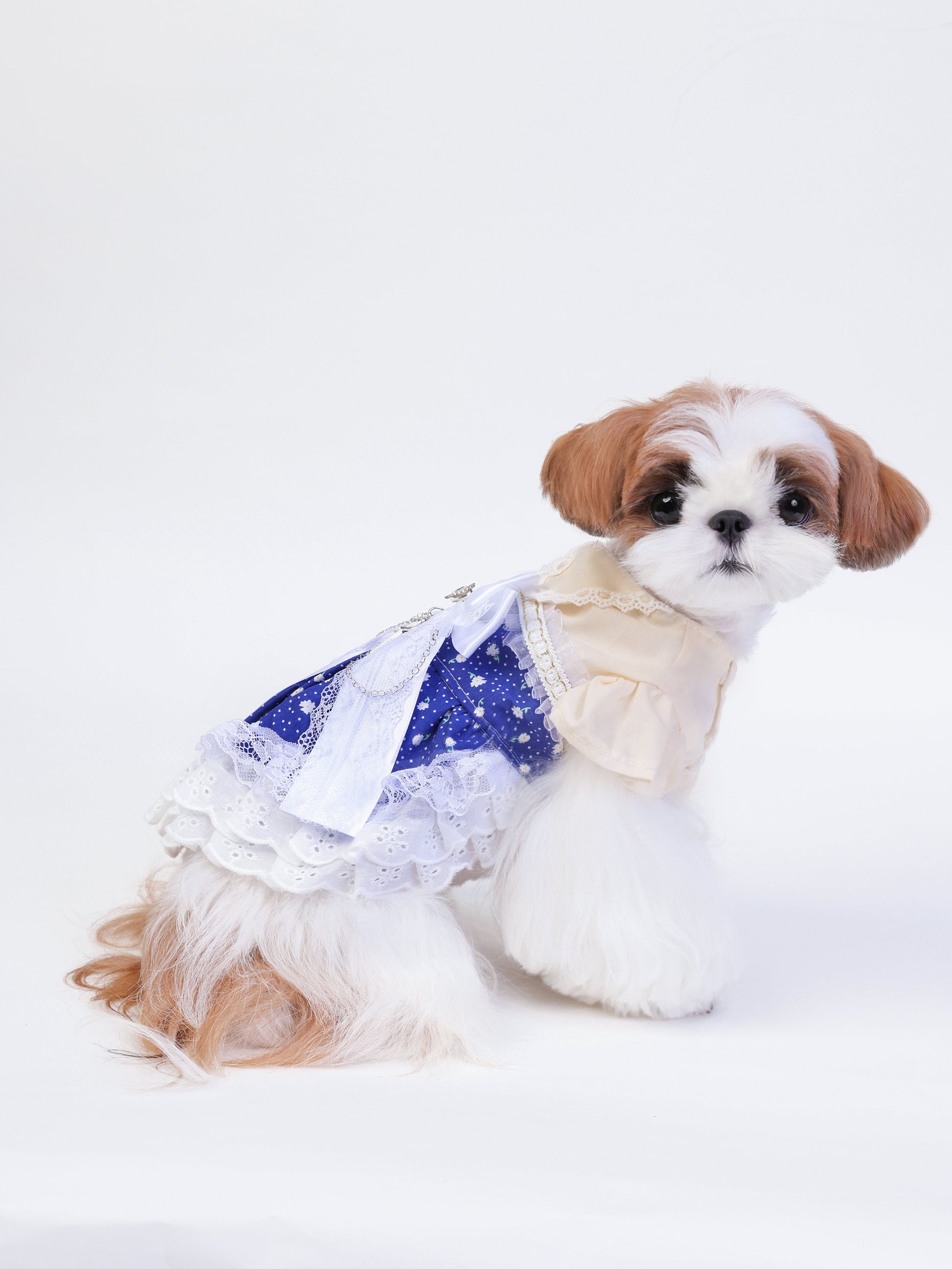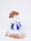 Starberry Kiss sparkles with celestial cuteness in deep blue and crisp white. Covered in tiny stars and lace ruffles, it’s tied together with a shimmering bow and silver charm. Perfect for stargazing strolls or picture-perfect pet moments under the moonlight.