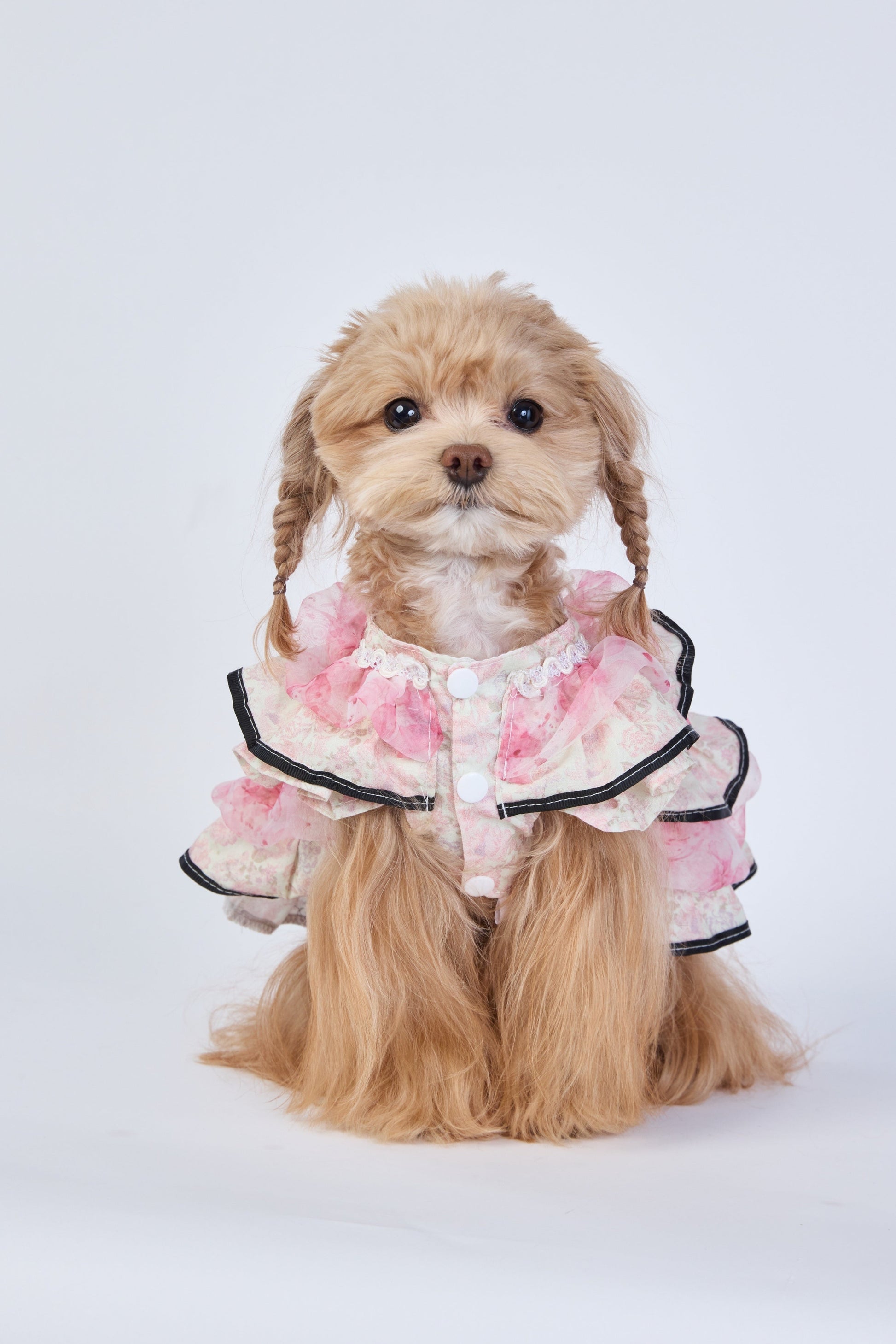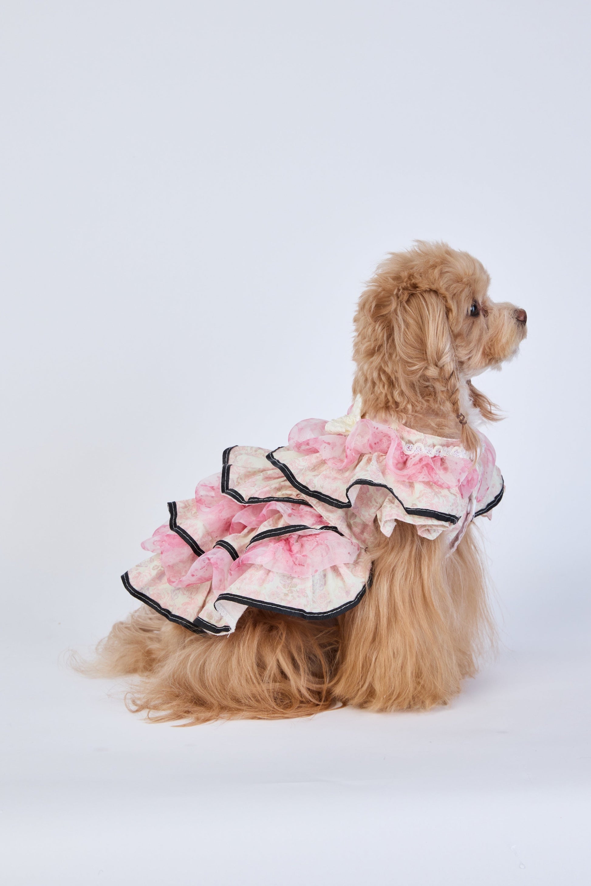 This pet dress feels like a soft whisper. Blush layers, delicate ruffles, and a gentle flow that follows every tiny movement. Made for cuddles, soft light, and moments you want to remember.