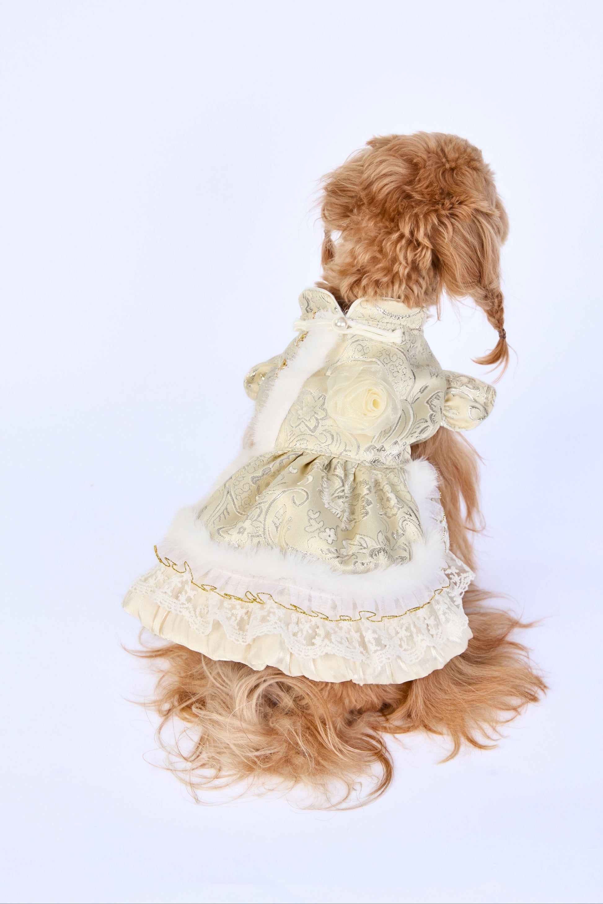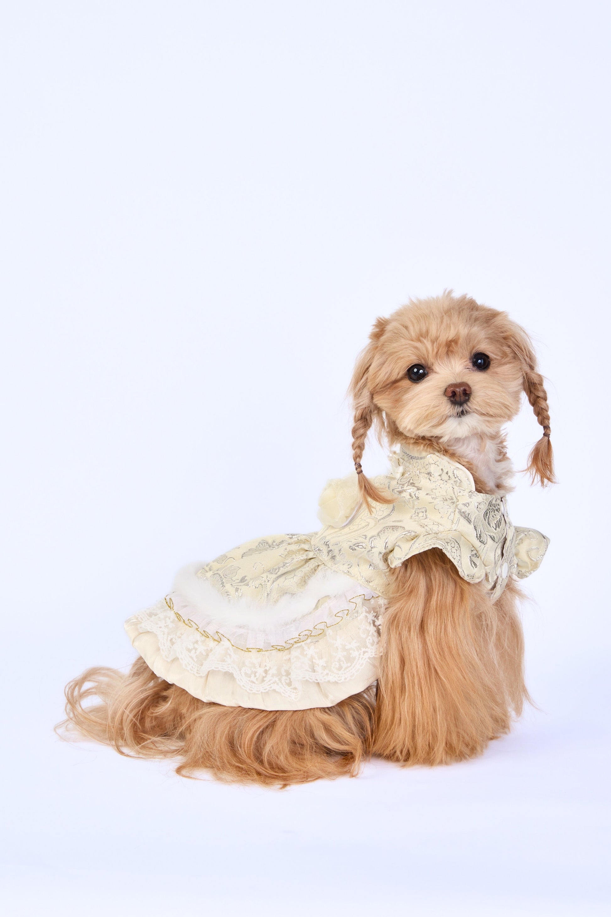 This Pawpaw Style pet dress feels soft and gentle, like a quiet moment held close.Creamy lace, airy ruffles, and delicate details move lightly with every step. Made for little ones who are cherished, wrapped in warmth, and loved without words.